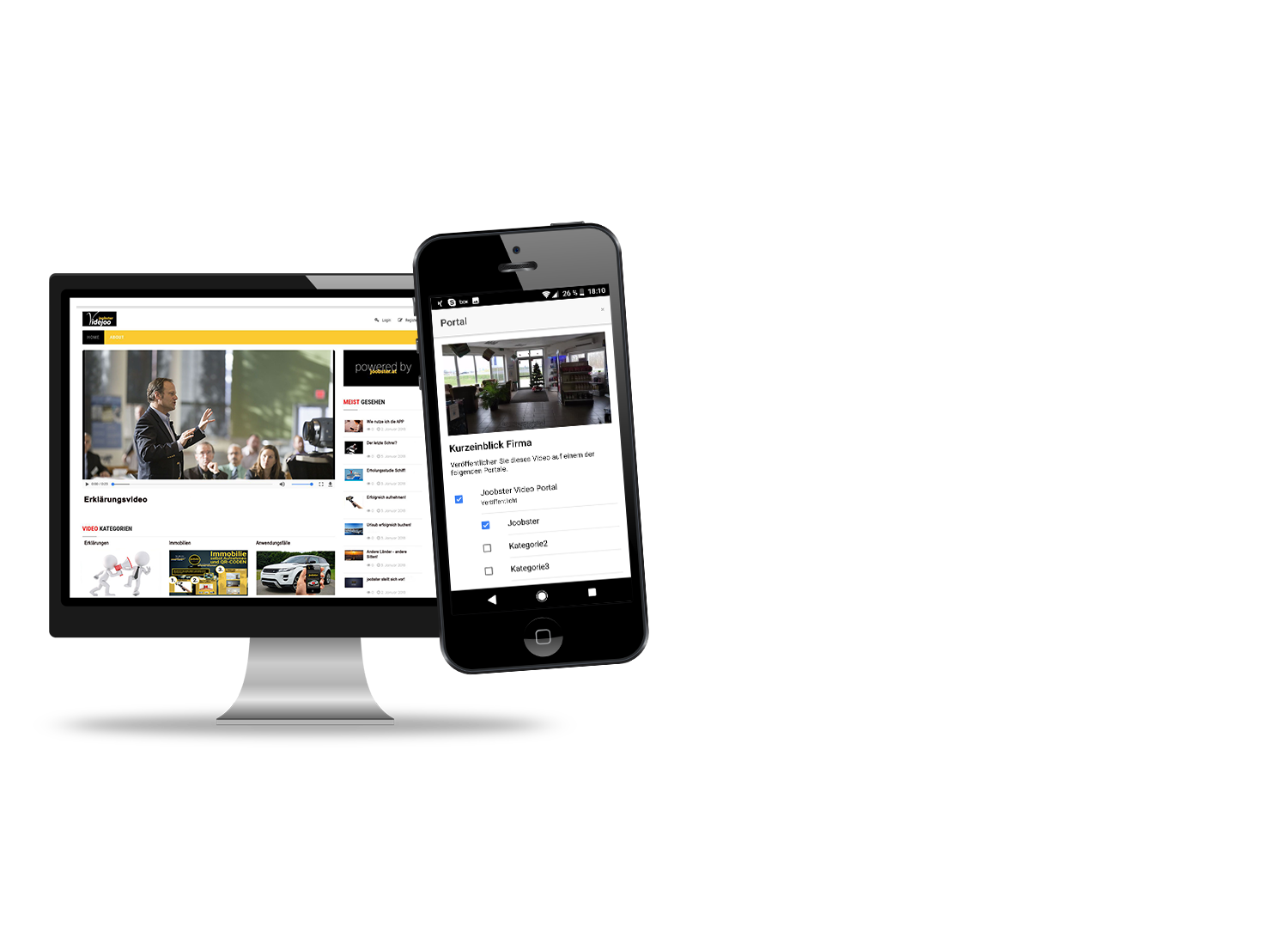 Use the possibility of your own video portal, your own video platform, a website that presents your videos in categorized form. All you have to do is to publish the video via the joobster action – APP and assign it to its category!